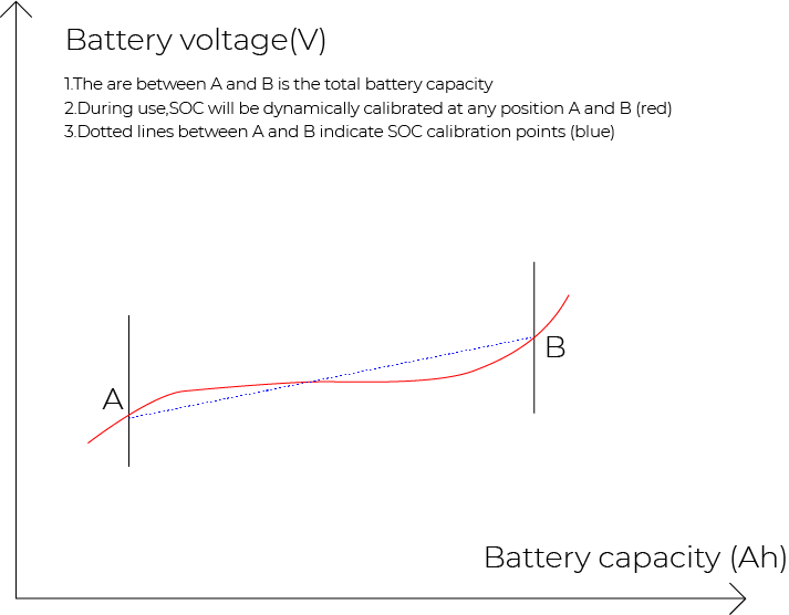 With our products, we collect data such as cell voltage, total voltage, and temperature data into the software. During operation, when the SOC error is found to be too big and the calibration conditions are met, the SOC Dynamic calibration will start (SOC will not suddenlly change ), and the SOC error will be infinitely reduced.